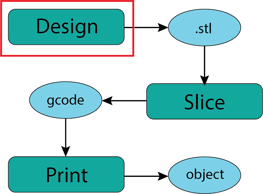 The output of your design process that is needed to move towards a 3D printed object is the .stl file. In all of the CAD software I have worked with this is a separate file (exported) from the design files that are native to the software. Like a .pdf file the .stl file is a stable and widely understood file format for describing 3 dimensional objects. Because the 3D printing community has grown largely from an open source/open hardware ethos you will find that many folks have designed objects they think are interesting or useful and then made the .stl files of their design available for others to use. Using designs created by others is a great way to learn about 3D printing and participate in the community. This is what we will explore next.